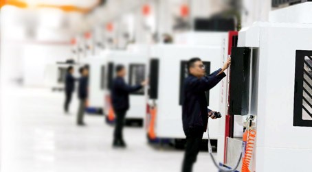 員工正在學(xué)習(xí)新機(jī)床的操作